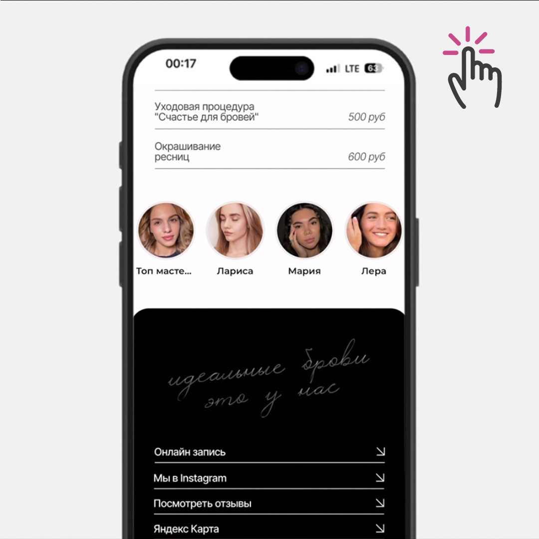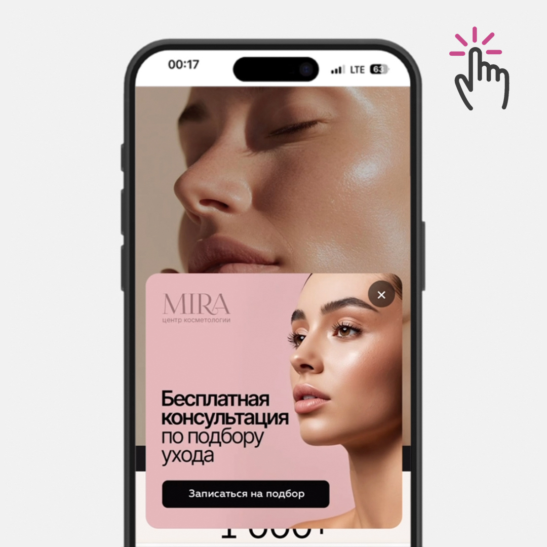 Закреплённая внизу экрана круглая кнопка, которая всегда остаётся на виду поверх контента. Она используется как быстрый CTA-элемент: переход в мессенджер, запись, консультация, ссылка на чат, каталог или любой другой важный переход.